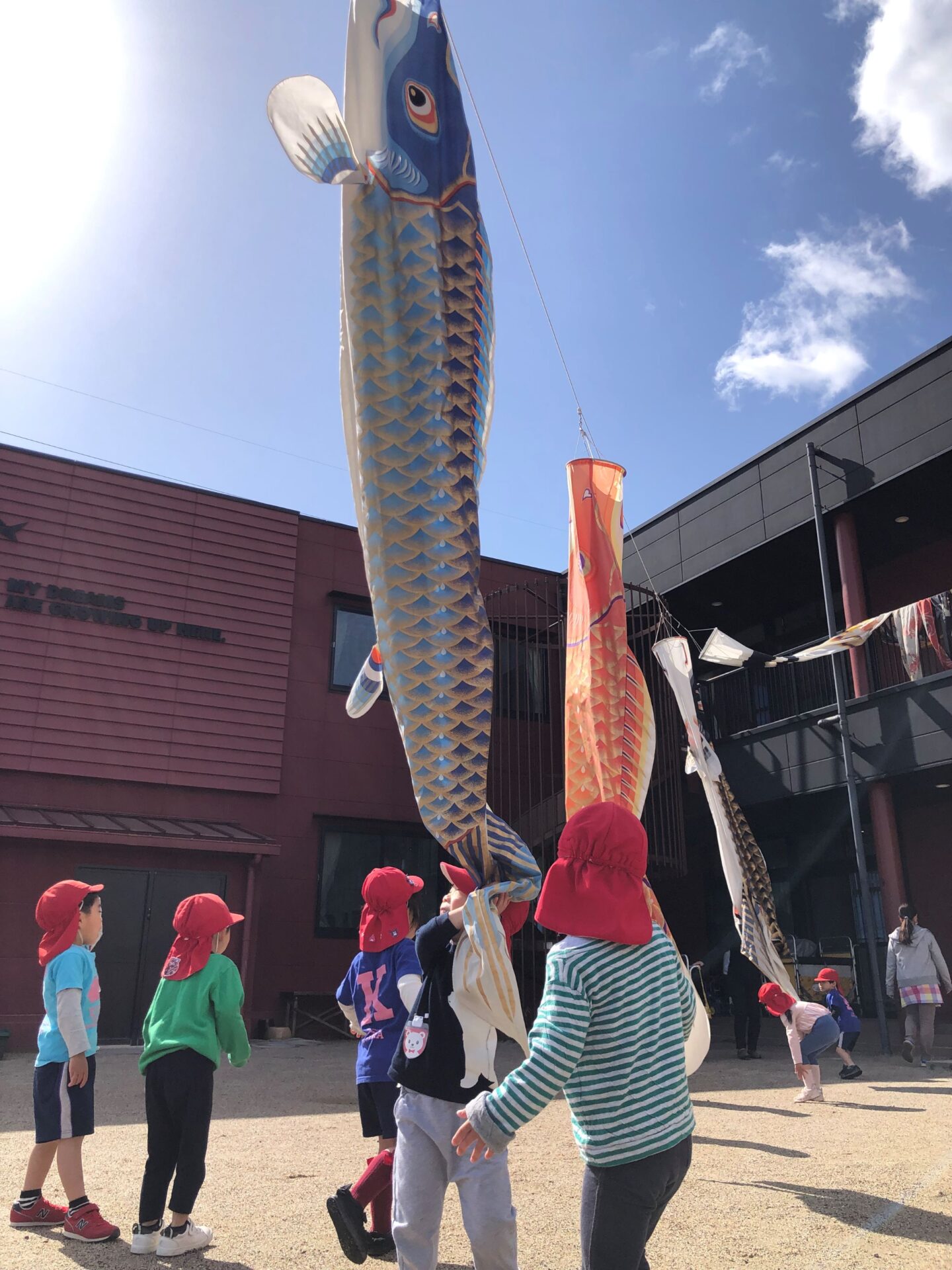 大きな大きなこいのぼりが、保育園にやってきました。