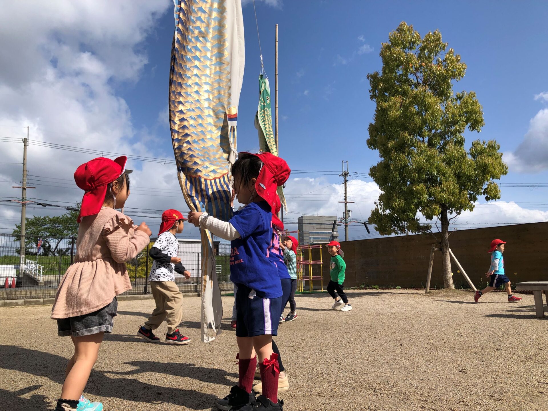 子どもたちの手が届く高さに泳いでくれる鯉のぼり!