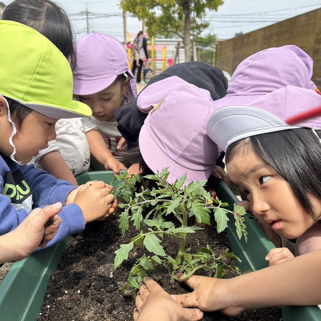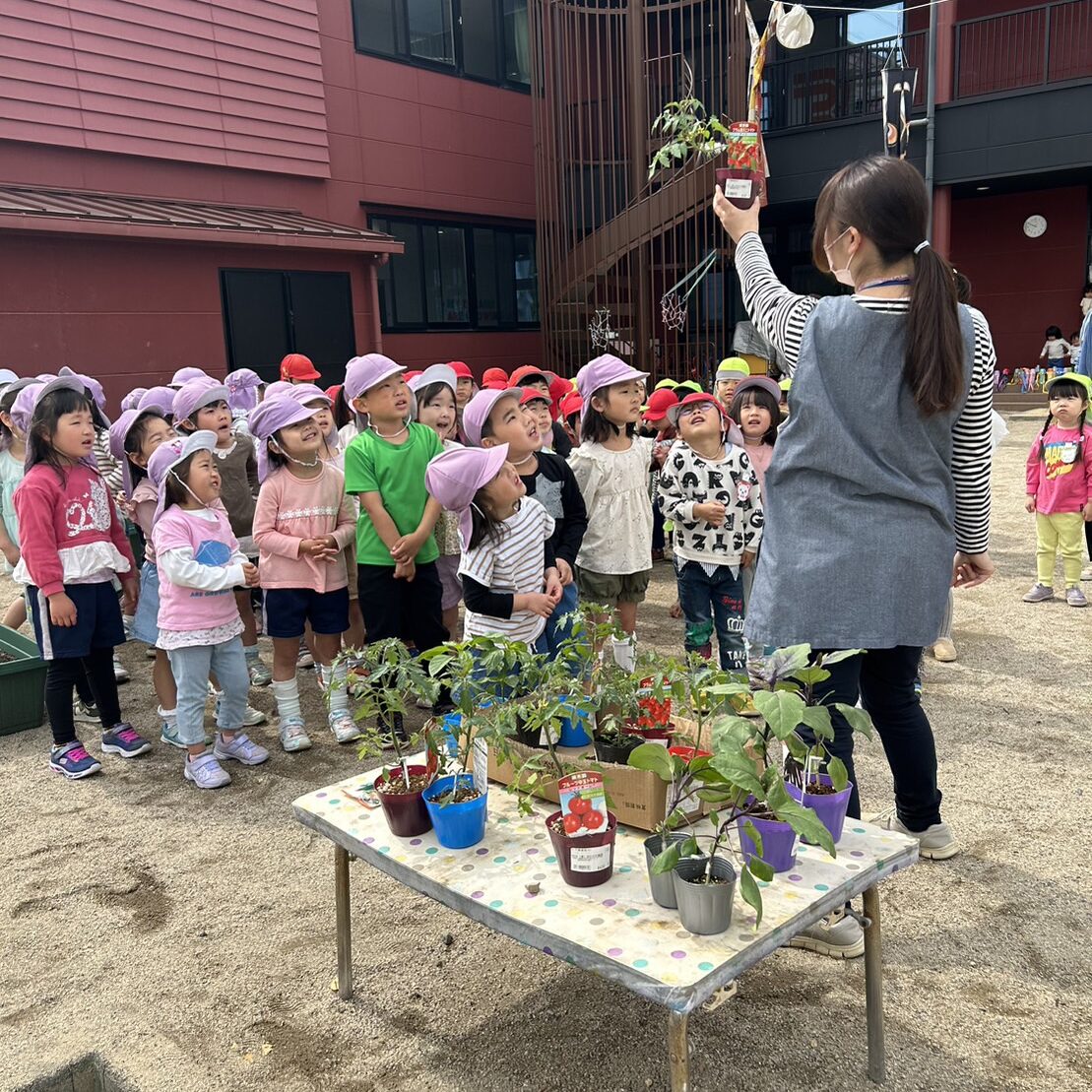 今年は3歳~5歳の異年齢でグループにわかれて、保育園で野菜を育てます。