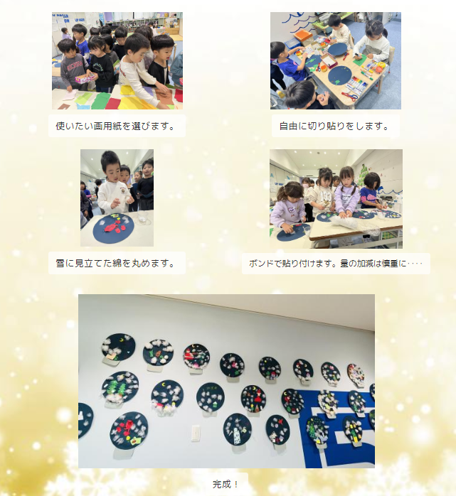 完成したスノードームを壁に飾ると「可愛い」「綺麗」「クリスマスだ〜」と楽しい声が廊下に響き渡りました♪