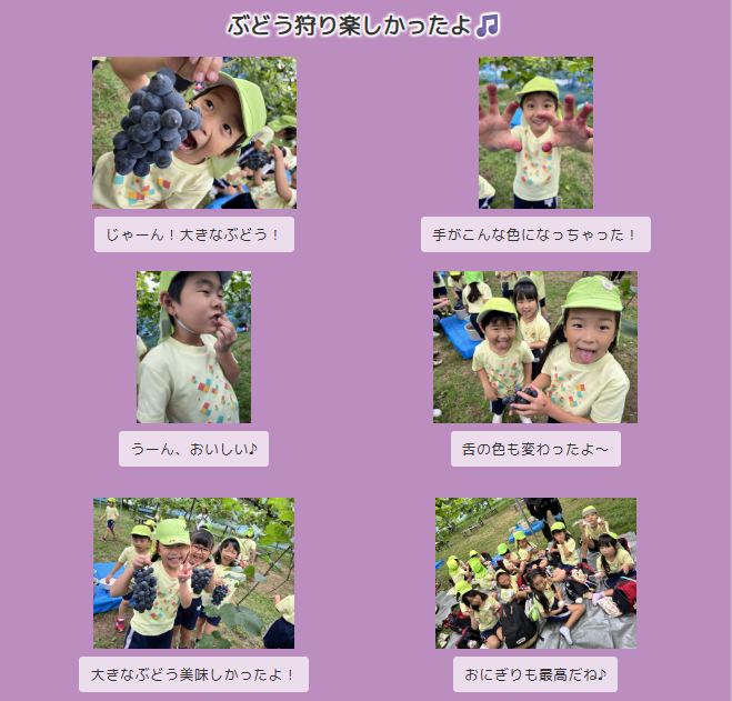 いざ農園につくとぶどうはどこ?ときょとん。とした様子の子ども達で、袋の中にかくれんぼしていることを知り、あったー!と大盛り上がりでぶどうを収穫しました♪