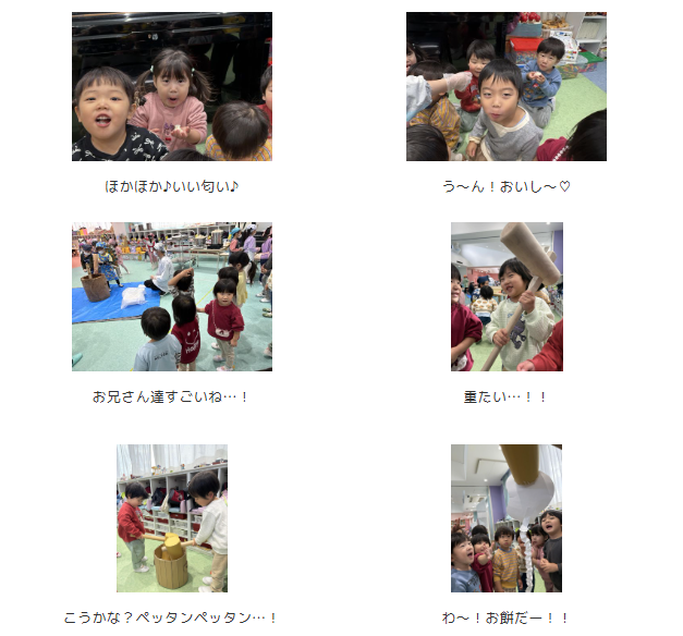 杵を使っておもちつきに挑戦しました!!杵の重さに体を持っていかれてしまいながらも、一生懸命ぺったんぺったんともちをついて、出来上がったおもちは絶品だったようです☆